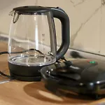 Een ingerichte keuken bij Johan'S Apartment is voorzien van een broodrooster en een oven. Libri Universitar bushalte is net om de hoek bij de 1-badkamer accommodatie.